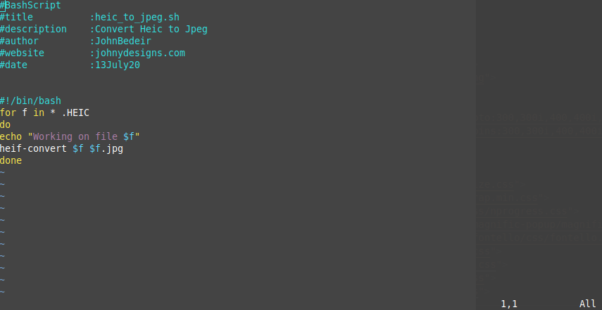 For iPhone users who face issue with importing pictures to their computers, this script is to convert "HEIC" file format to "JPEG" and export the files in the same directory.