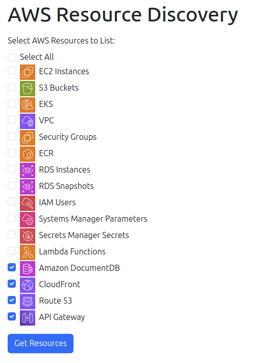 This tool is designed to interact with AWS and list 12 of AWS resources such as EC2 instances, S3 buckets, IAM users, and more. It provides a web interface where users can select which resources they want to view.