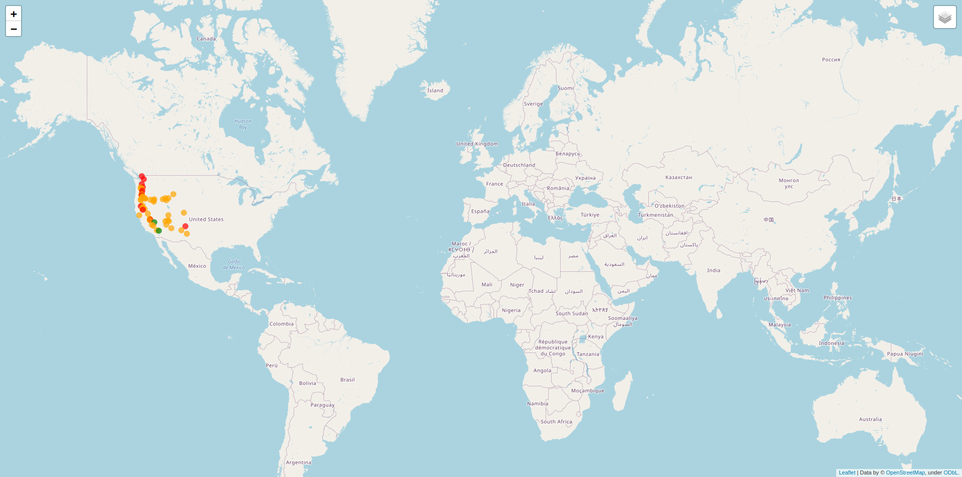 Using Python to export an "HTML file" with the world map and adding markers on specific locations.