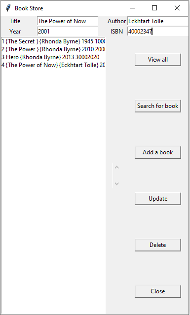 This application is built for a Book Store, it is made to be able to add, update, delete and view all books stored in the database.